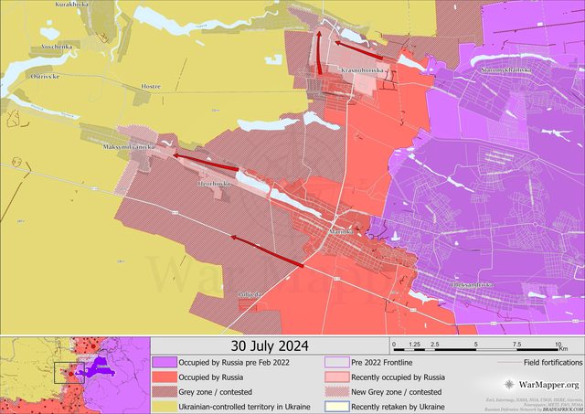 在克拉斯諾霍里夫卡,俄軍佔領了城鎮中心