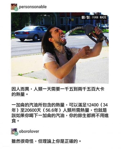 推 tp6ej04yow : 梗圖是不是把大卡跟卡的換算搞錯了(注意力被拉走 07/31 09:54