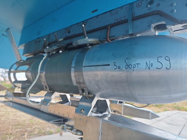 昨天發布了一張 Su-34 的照片,該照片配備了裝有 UMPK 的炸彈,上面刻有「For bort