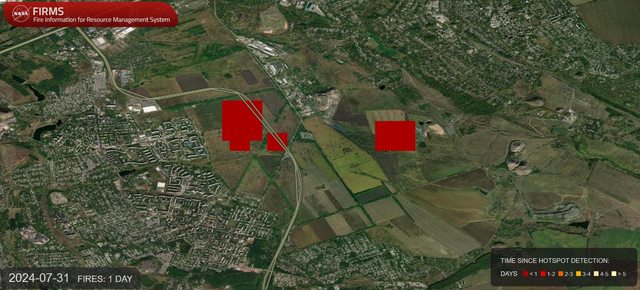 同樣在同一天,美國太空總署資源管理系統火災資訊偵測到附近地區發生火災。