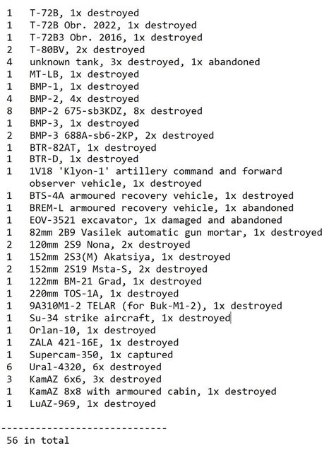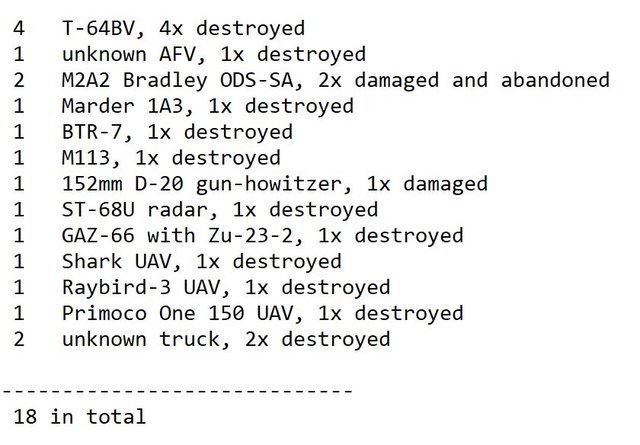 目視確認損失軍事裝備統計 2024.08.02 ~ 08.05
