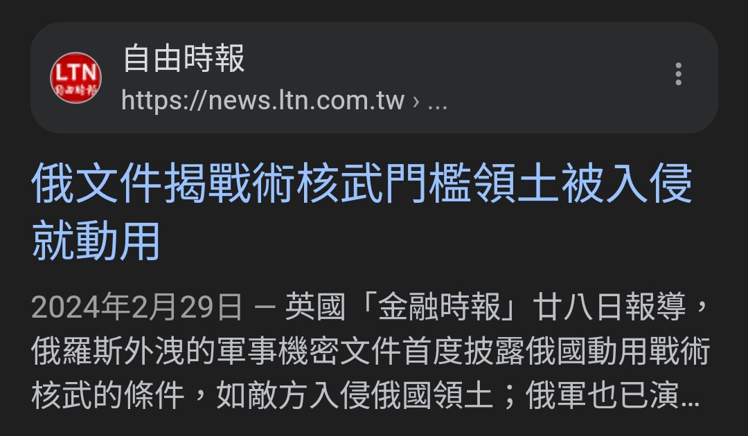 F04E : 軍力世界第二的特別軍事行動打到要動用核彈 08/11 16:33