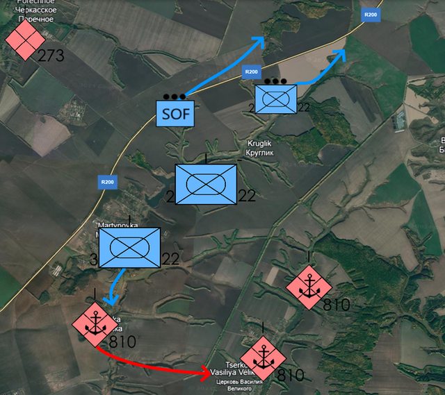我們從前一天由烏軍佔領馬丁諾夫卡出發。