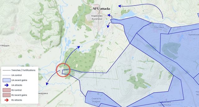在科雷內沃,該鎮的烏軍可能進一步