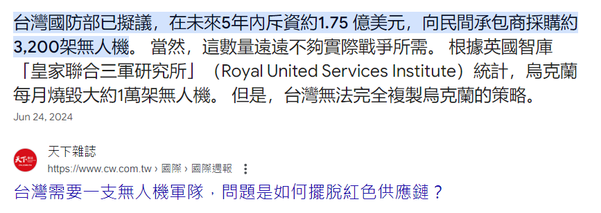 jayppt : 我們之前數位部1年200億 但無人機只規劃1億多 08/19 22:27