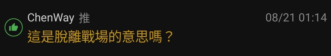 推 tonywiner : 那不回答你的問題就是脫離戰場? 自己官威更大呢 08/22 09:12