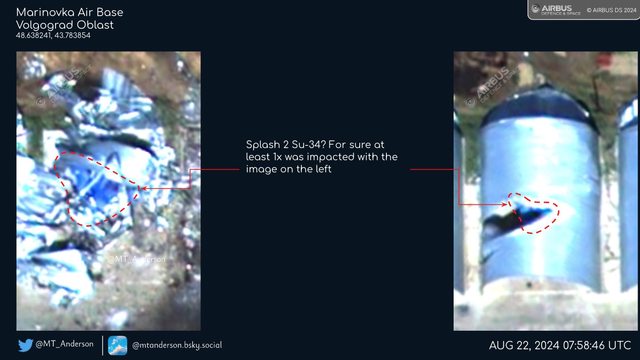 - 一架Su-34和Su-24在維修區被完全摧毀