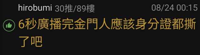 推 hirobumi : 6秒廣播完金門人應該身分證都撕了吧