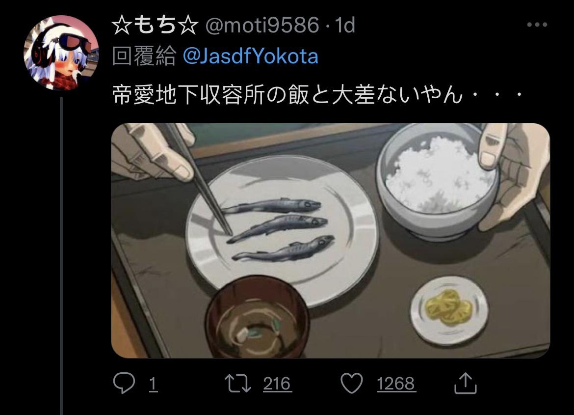 → verdandy : 結果被吐槽帝愛集團的奴隸餐都比空自的伙食豐盛 09/01 16:31