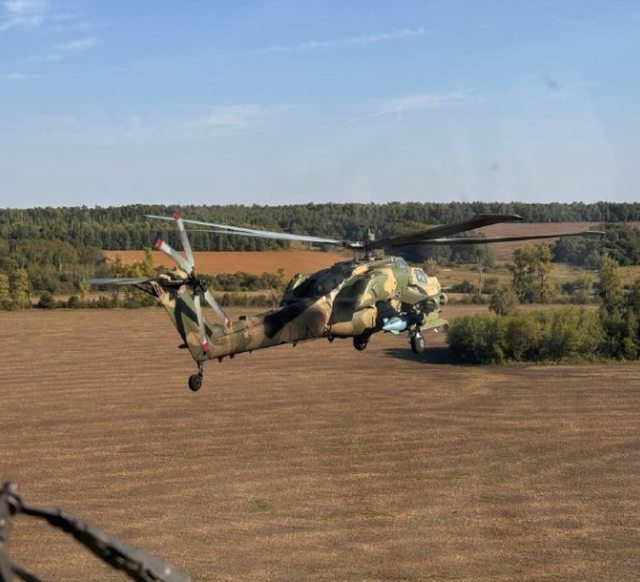照片顯示一架 Mi-28NM 攻擊直升機正在