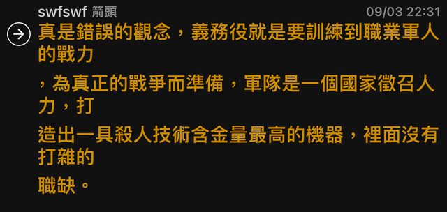 → sisik : 兩年兵時期練的越戰戰術,不覺得當年義務役只是填線 09/04 18:40