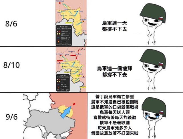 推 andyken : 有一個很明顯是超級快樂圖,烏軍啥麼時候放掉科列涅 09/07 23:37