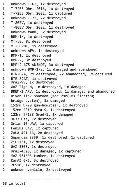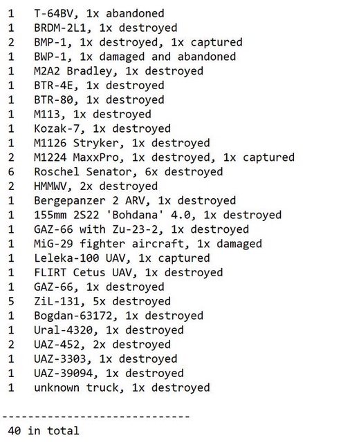 目視確認損失軍事裝備統計 2024.09.06 ~ 09.08