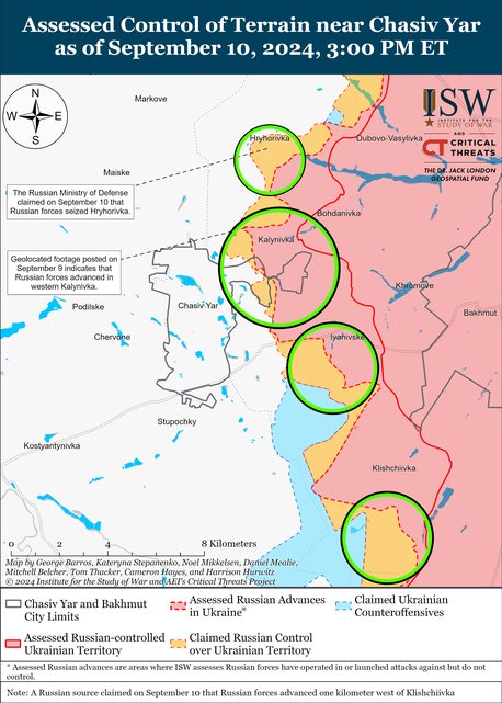 9月10日,俄羅斯軍隊繼續在恰西夫亞爾附近