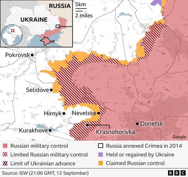 俄羅斯軍隊目前正在向波克羅夫斯克以南
