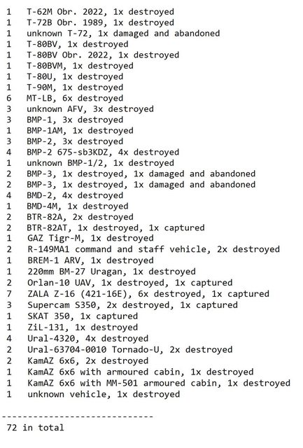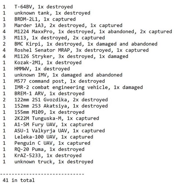 目視確認損失軍事裝備統計 2024.09.16 ~ 09.19