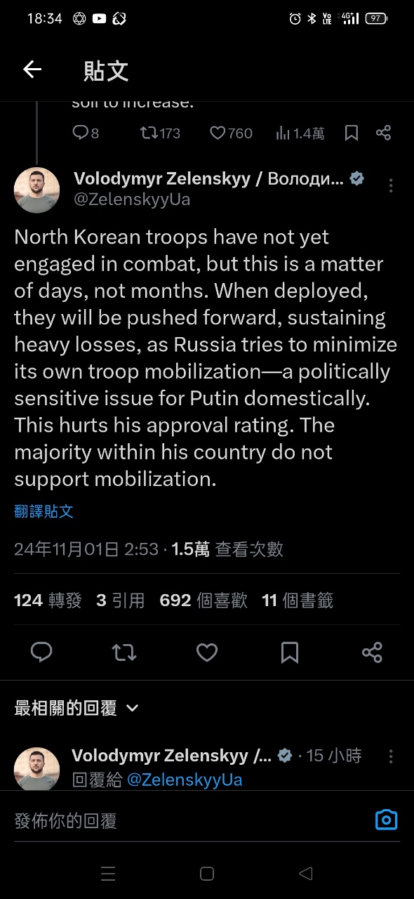 vt1009 : 俄軍無法對北韓軍人下達戰術命令只能恐嚇他們往前 11/01 23:06