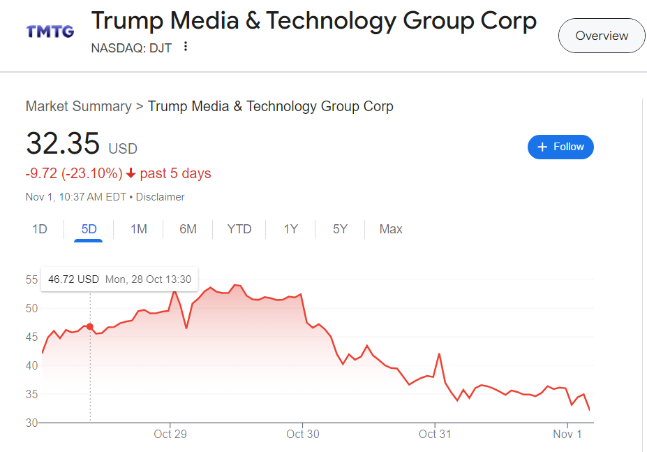 → ja23072008 : 投機炒作就會像之前GME,股價跟現實情況脫鉤。DJT一 11/01 23:51