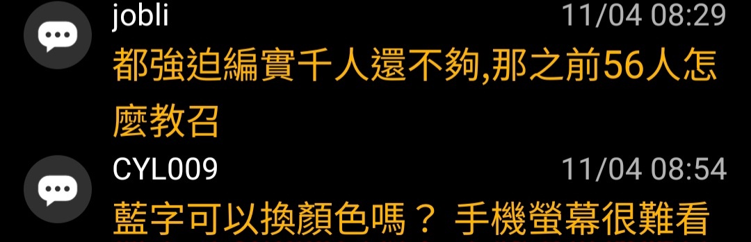 → CYL009 : 藍字可以換顏色嗎? 手機螢幕很難看 11/04 08:54