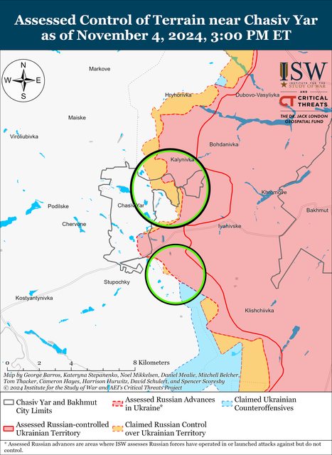 11 月 4 日,俄軍繼續在 Chasiv Yar 附近和
