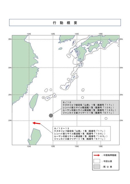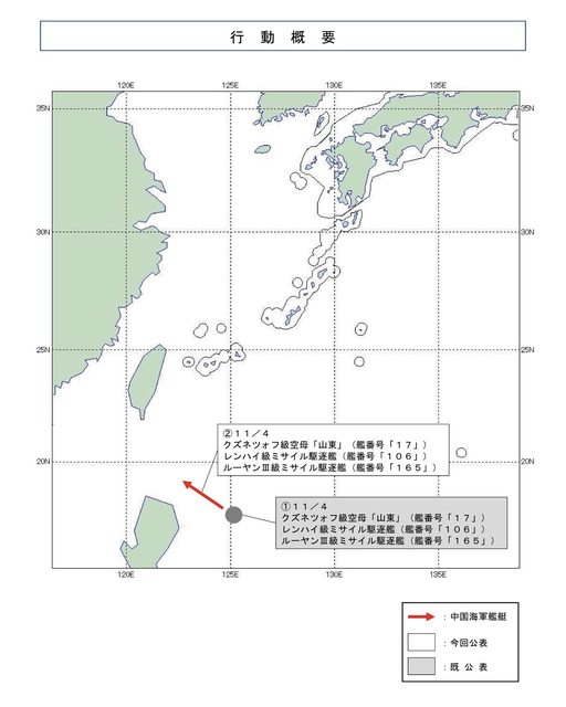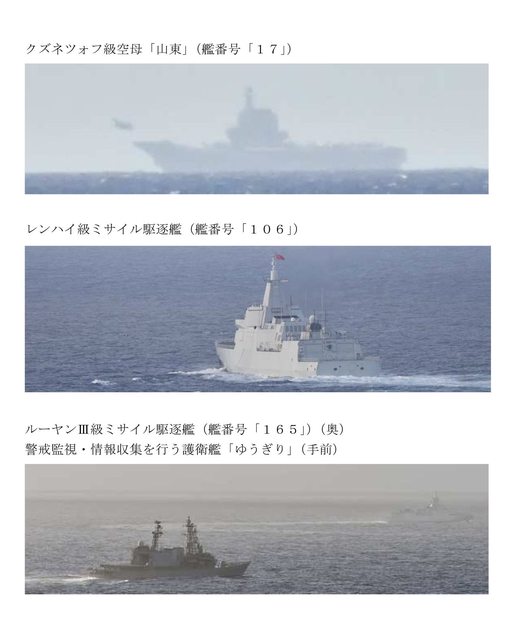 週一,日本海上自衛隊證實,山東艦、CNS 延安號巡洋艦 (106) 和 CNS 湛江號驅逐艦 (165) 正在宮古島以南約 450 英里處航行。 https://i.imgur.com/z8r34dg.png