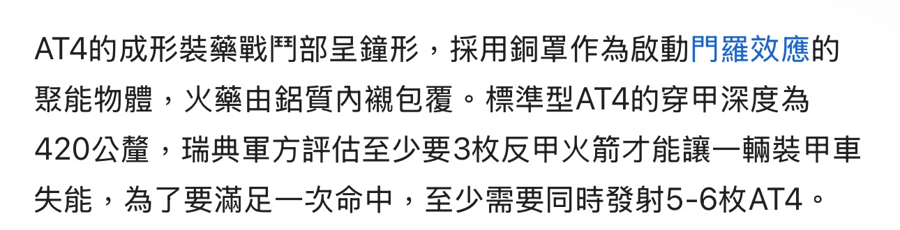 peterlee97 : AT4不行? 看維基有寫1994時有測試擊破“裝設反應 11/08 12:01
