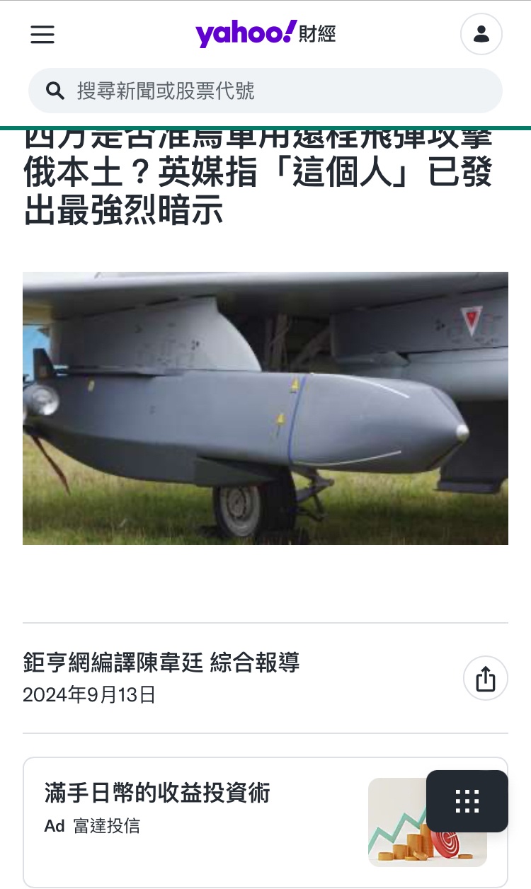 PTTHappy : 使用該國的「風暴陰影」巡航導彈打擊俄境內目標。" 11/09 18:21