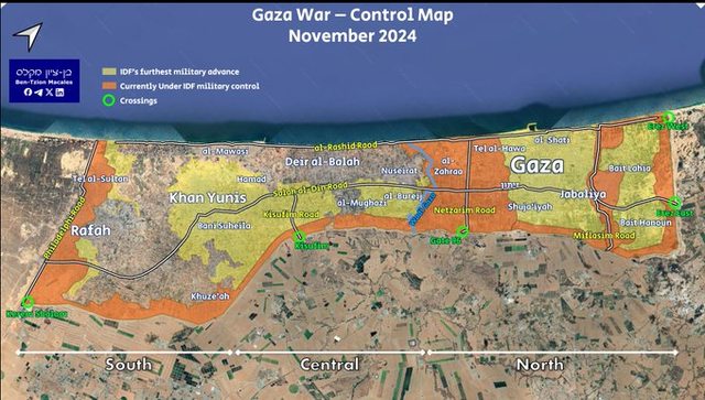 這張地圖展示了自戰爭開始以來以色列國防軍