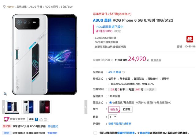 近期想換ROG Phone 6,猶豫買空機還是搭配方案? momo買空機的話24990,用momo卡4%無上限 買下來大概23990 https://i.imgur.com/srJywEO.jpg