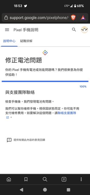 如題,Pixel有個線上檢測電池是否異常的功能 原先測完顯示有問題,畢竟也用了兩年,沒完遊戲卻也各種發燙滑不動,所以決定去手機維 修行(不是台哥大)更換電池 換下時店家表示舊的已經四角出現膨脹現象,更換為原廠新的電池 結果換完之後再測一次... 還是一樣報說有問題=口=?! https://i.imgur.com/LEwokbb.jpg