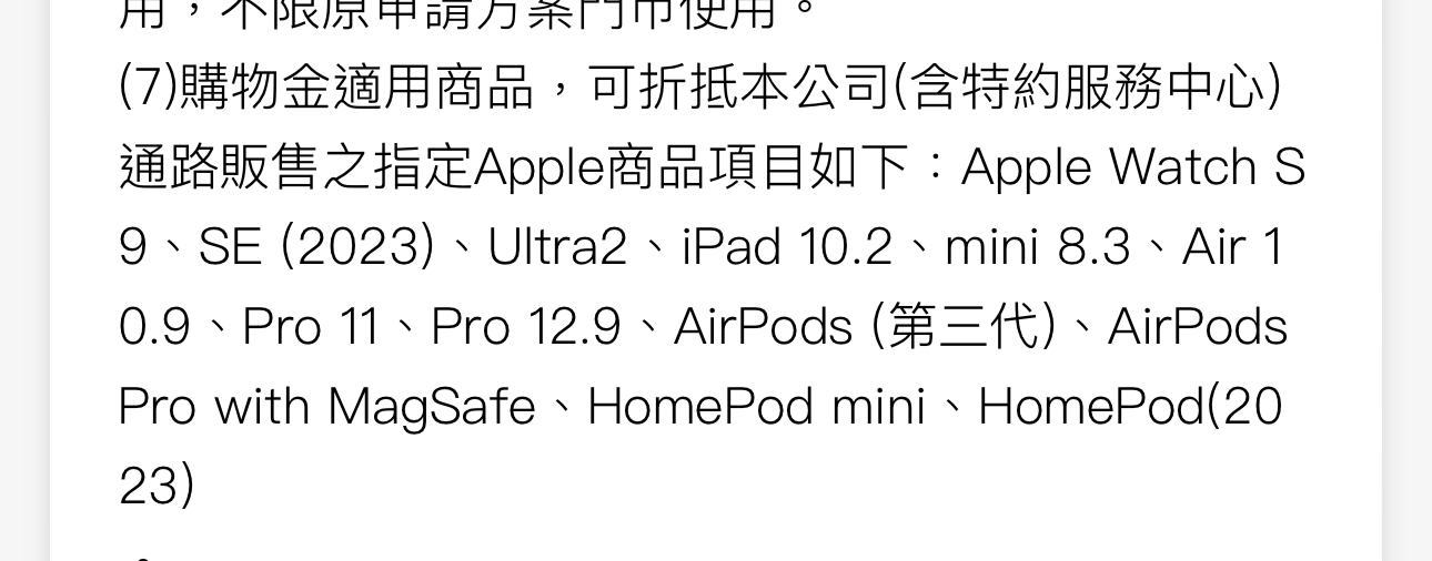 jewlsong : 還有送配件金?? 不是只有Apple配件購物金喔? 09/25 13:07