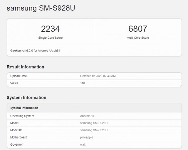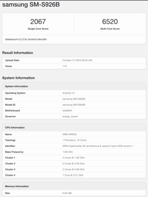 用Exynos 2400的S24+出現在Geekbench 上 單核2067,多核6520 對比S23 Ultra 是單核2090,多核5500 Exynos 2400的單核小輸8G2,多核提升很大 http://i.imgur.com/EX9efTX.jpg