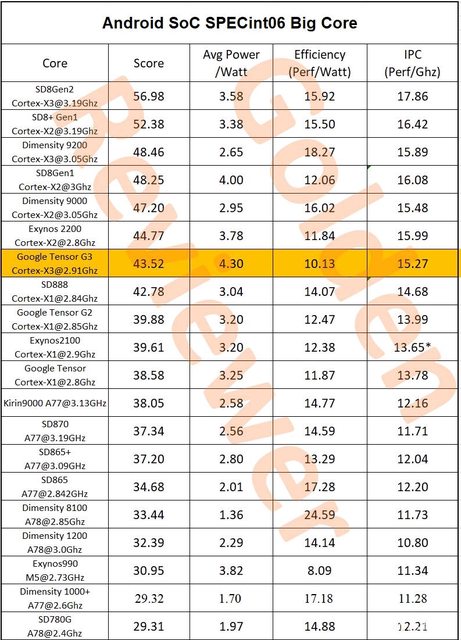 另外SPEC2006 CPU 大核、中核能耗也出來