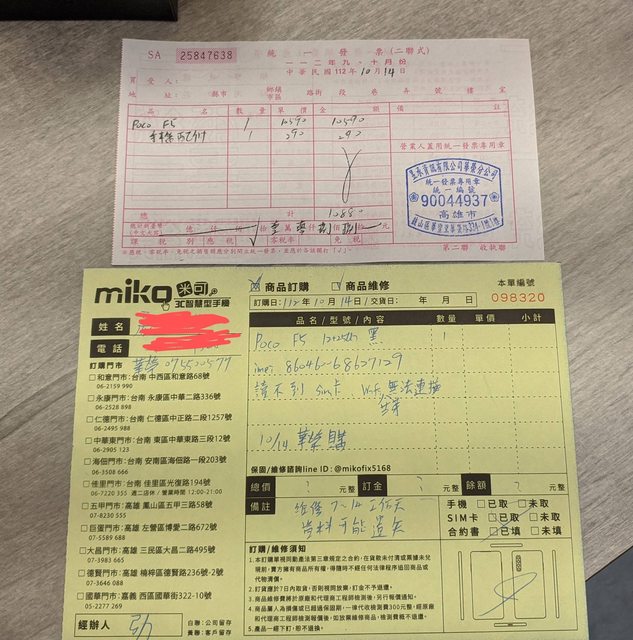 bboy5j : 請問sim1跟sim2都讀不到嗎?看你維修單寫wifi、藍牙 10/14 22:08