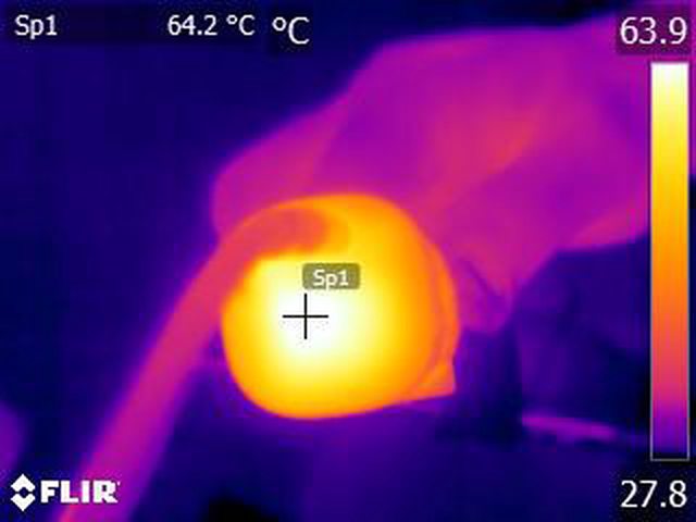 ▼110V輸入下輸出20V/3.3A維持31分鐘自動截止後連接埠處的紅外線熱影像圖