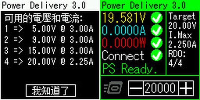 輸出:5V/3A、9V/3A、11V/6.1A、12V/2.25A、15V/3A、20V/3.25A