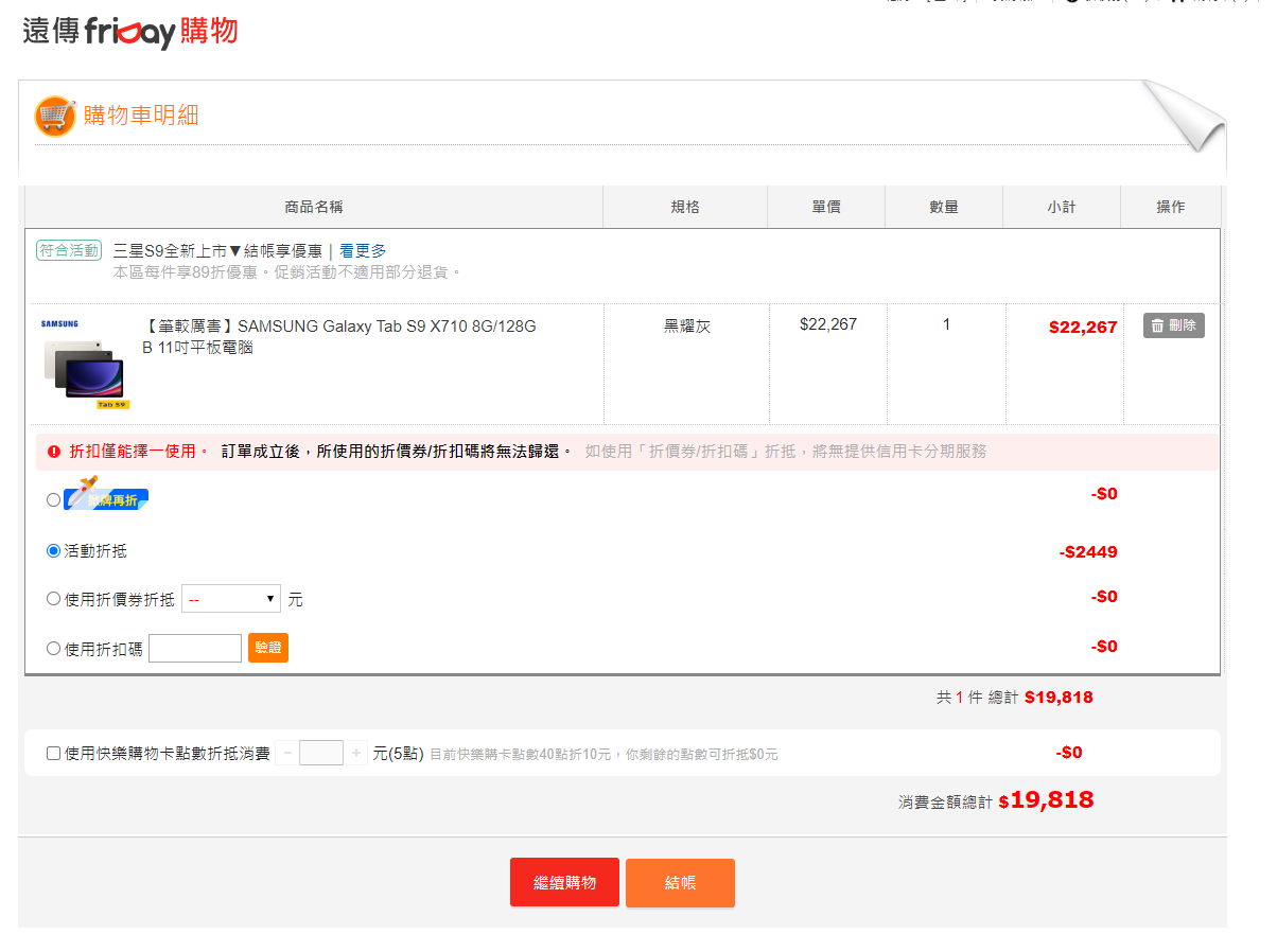 davidhsian : 今天也在官網買tab s9單機版 ,配上line pay跟導購 11/11 15:33
