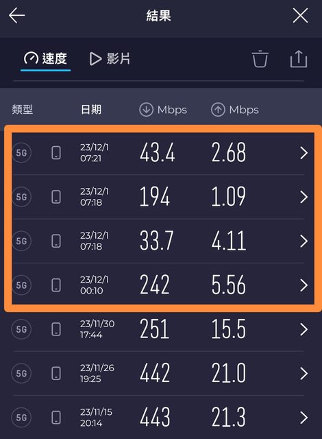 → doubi : 測速本來就會因為地理位置不同、基地站分佈不同而 12/01 08:58
