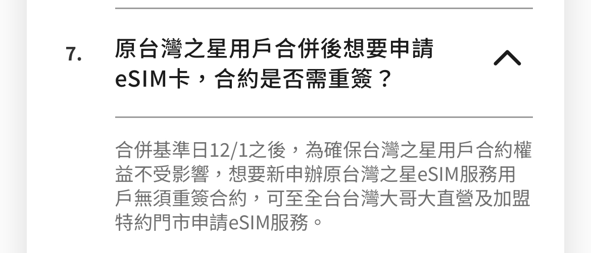 推 emc771222 : 之前有公告好像到4月,5月開始新申辦eSim就是要重簽 12/01 11:49