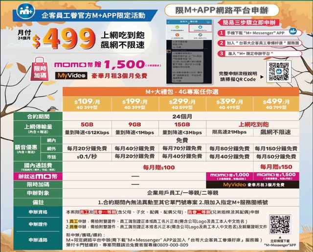 推 tornado1621 : 昨天女友辦企客遠傳499,不限速吃到飽 12/04 19:27