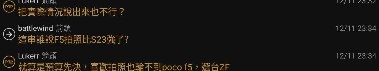 → Lukerr : 我只是給個意見說poco f5拍照沒有比S23+/S23U強, 12/11 23:39