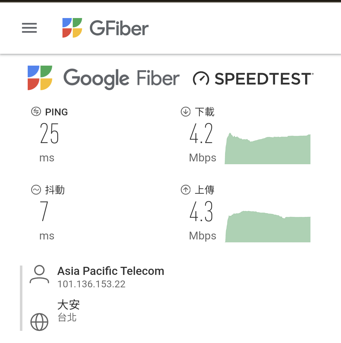 推 d89413208 : 一樣爛,因為遠傳在淡水(我家),連測速都無法測 12/21 14:28