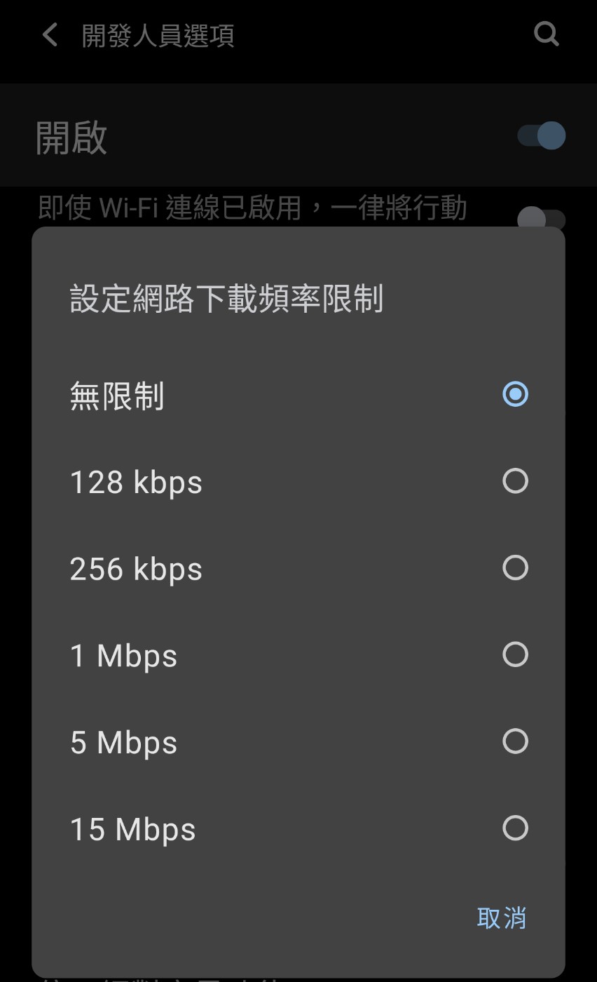 → dandingduck : 開發人員選項 > 網路下載頻率限制01/04 11:25
