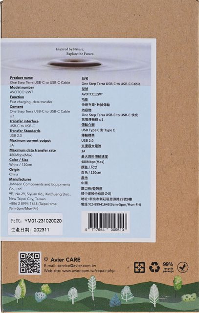 標題[心得] Avier One Step Terra USB-C to USB-C線