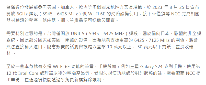 推 hcym9 : 台灣6E頻段沒有全部開放 01/09 19:13