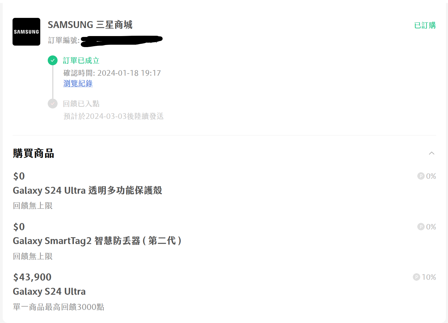 推 kira1211 : 結果買S24配了一個990的充電組 用J卡回饋2395點LP 01/18 13:56