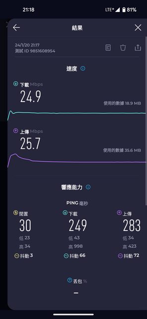 → ymx3xc : 4G網路的PING會隨著時段壅塞或順暢不同,除非能獨享 01/20 23:03