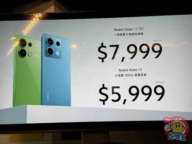 Redmi Note 13 建議售價 5,999 元;2 月 1 日起,Redmi Note 13 5G 於中華電信、遠傳?