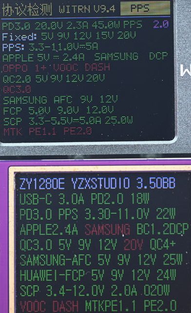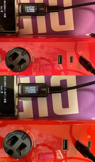 ▼USB-C1使用5A線材連接三星S23 Ultra,於低電量下可觸發超快速充電2.0的45W充電(上