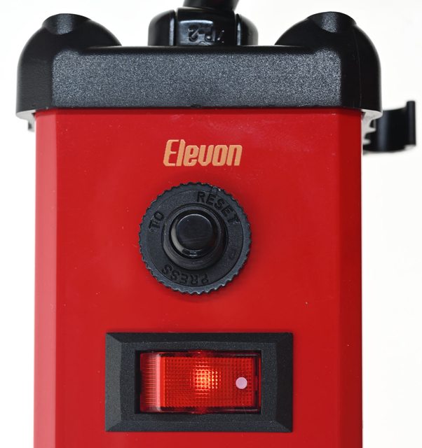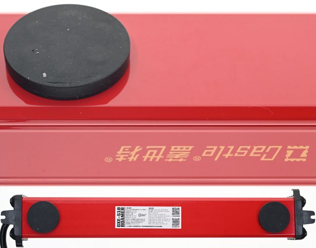 ▼延長線採用紅色亮面烤漆鋁合金外殼,正面有過載無熔絲開關、帶燈開關、5個旋轉插